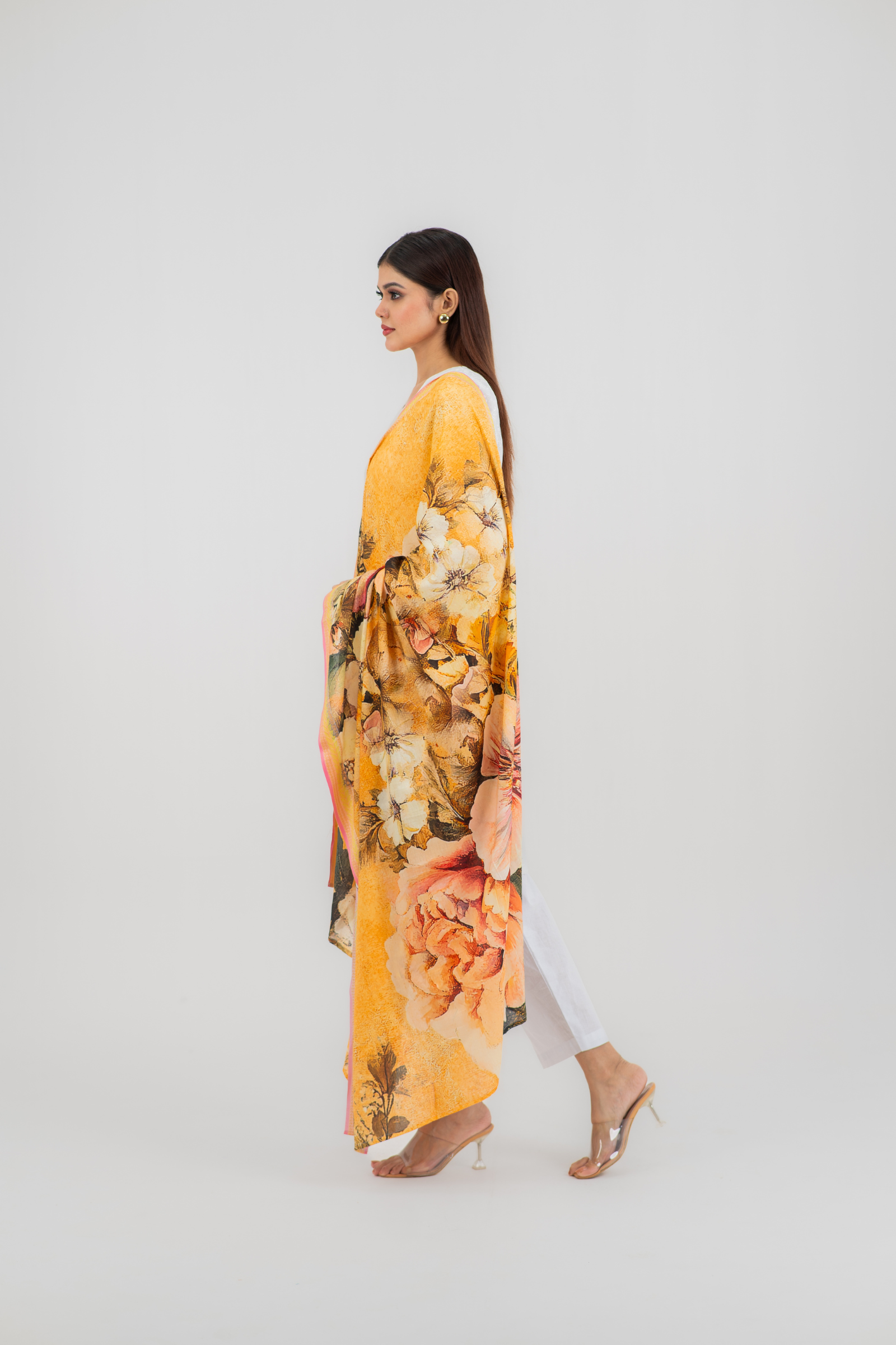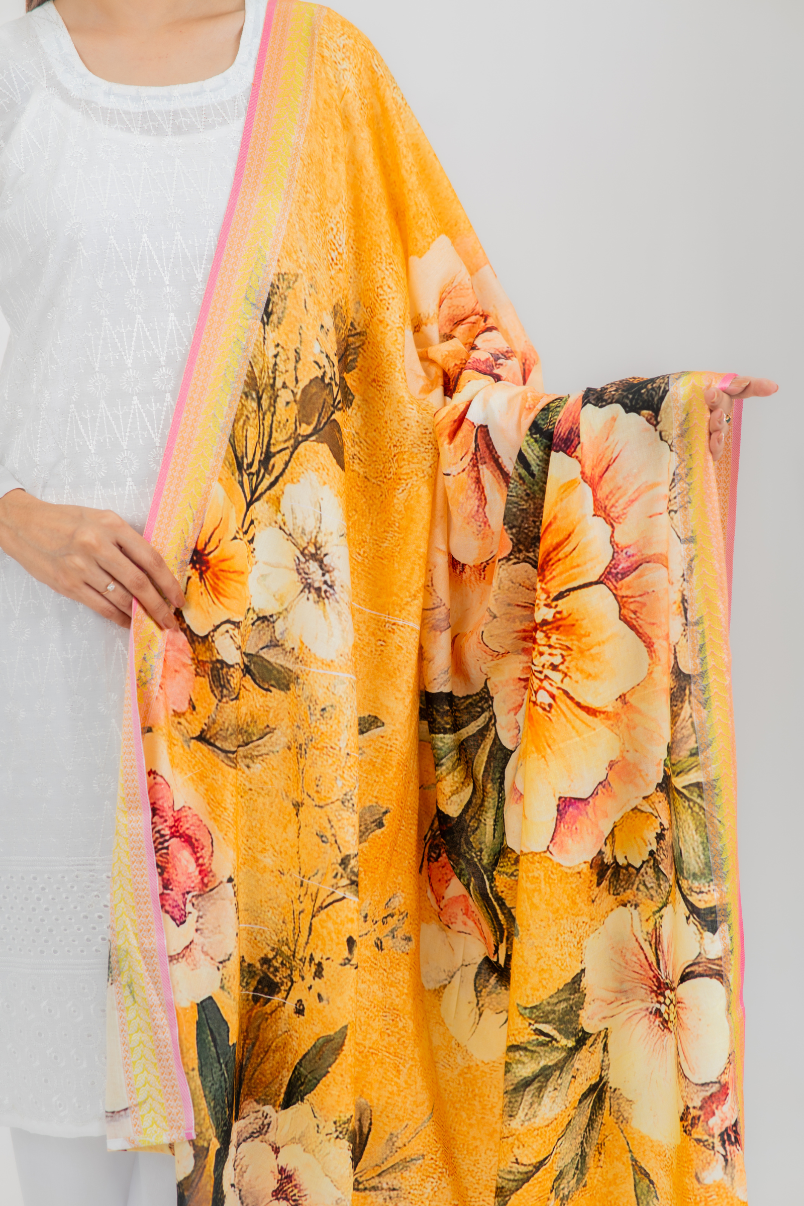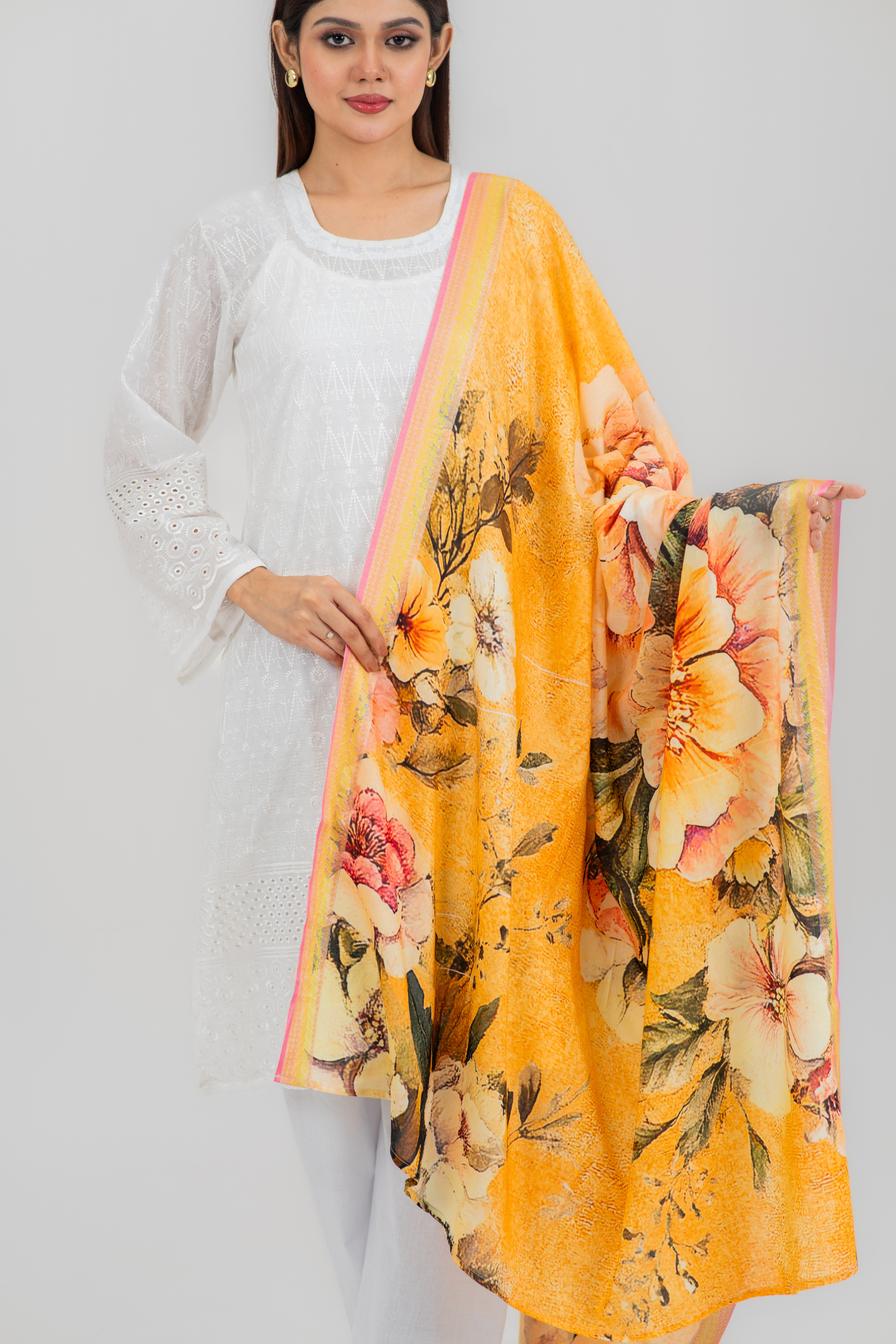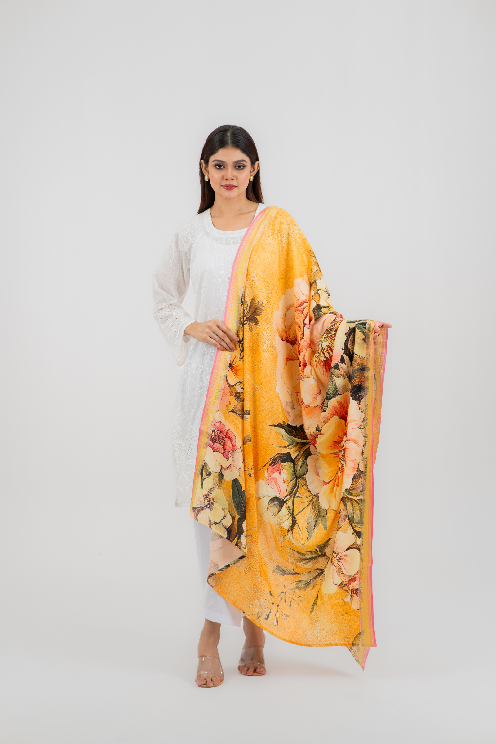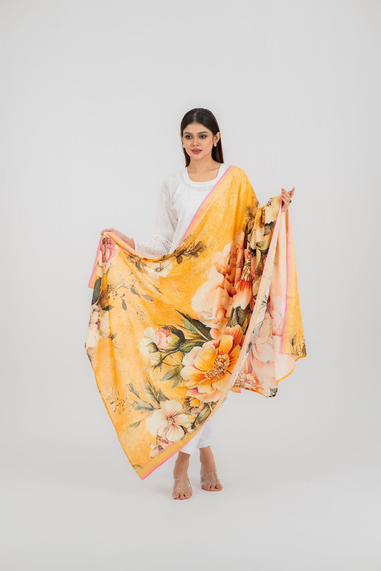 Gorgeous digitally printed orna on superfine tencel fabric with woven jacquard border.