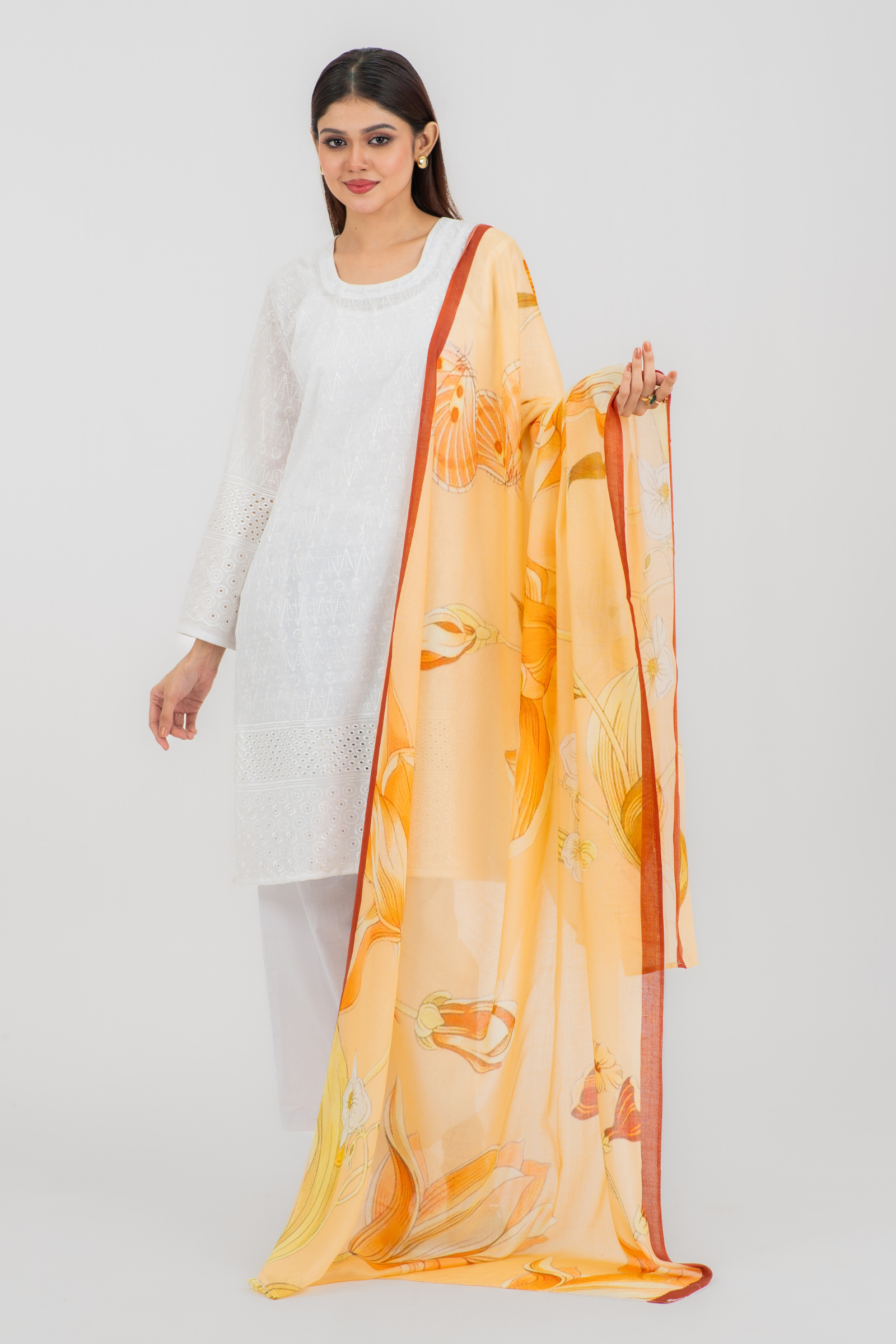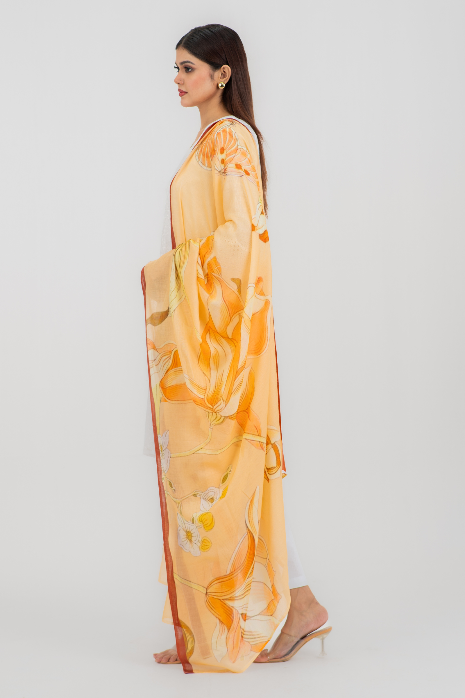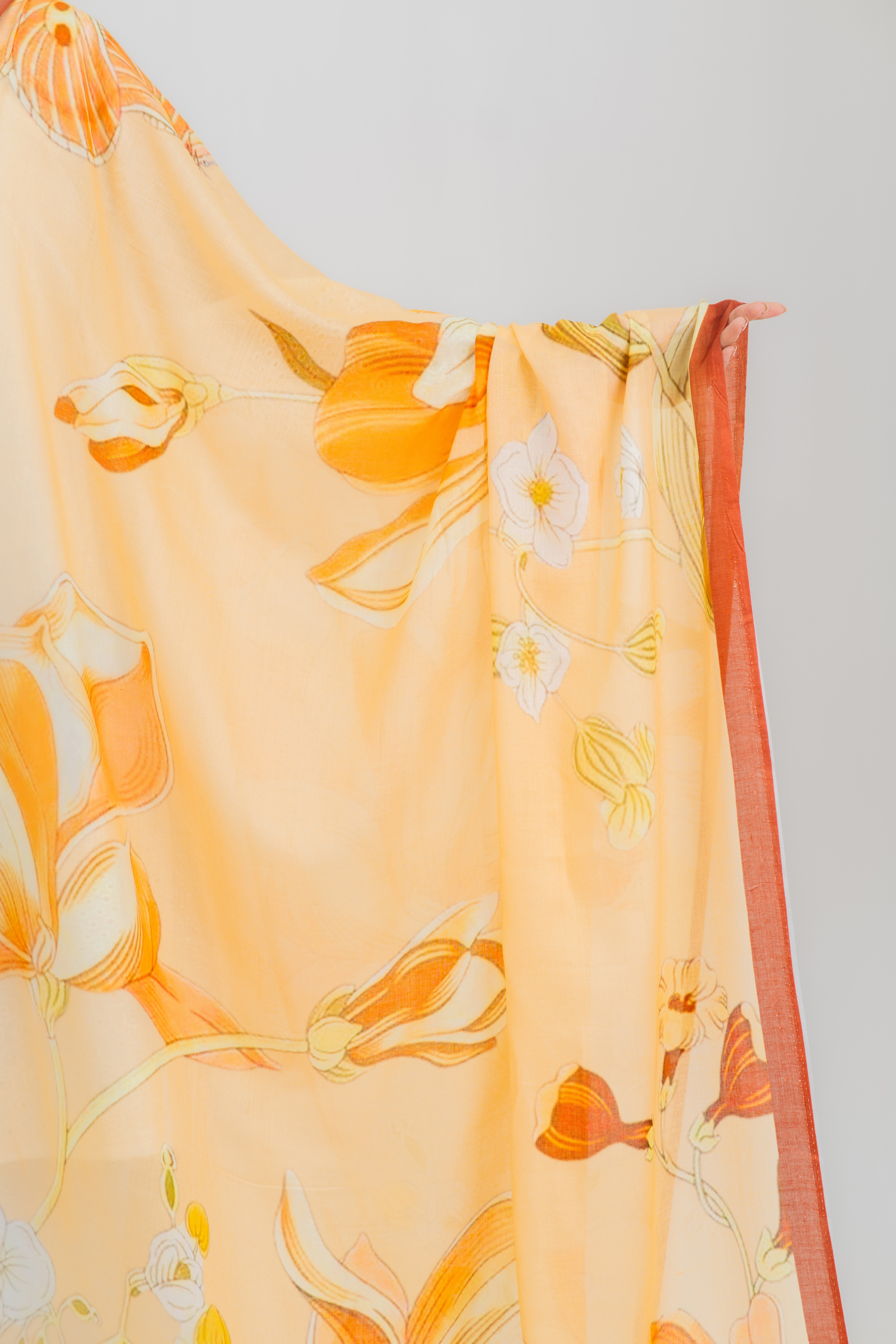 Gorgeous digitally printed orna on superfine tencel fabric with printed solid border.