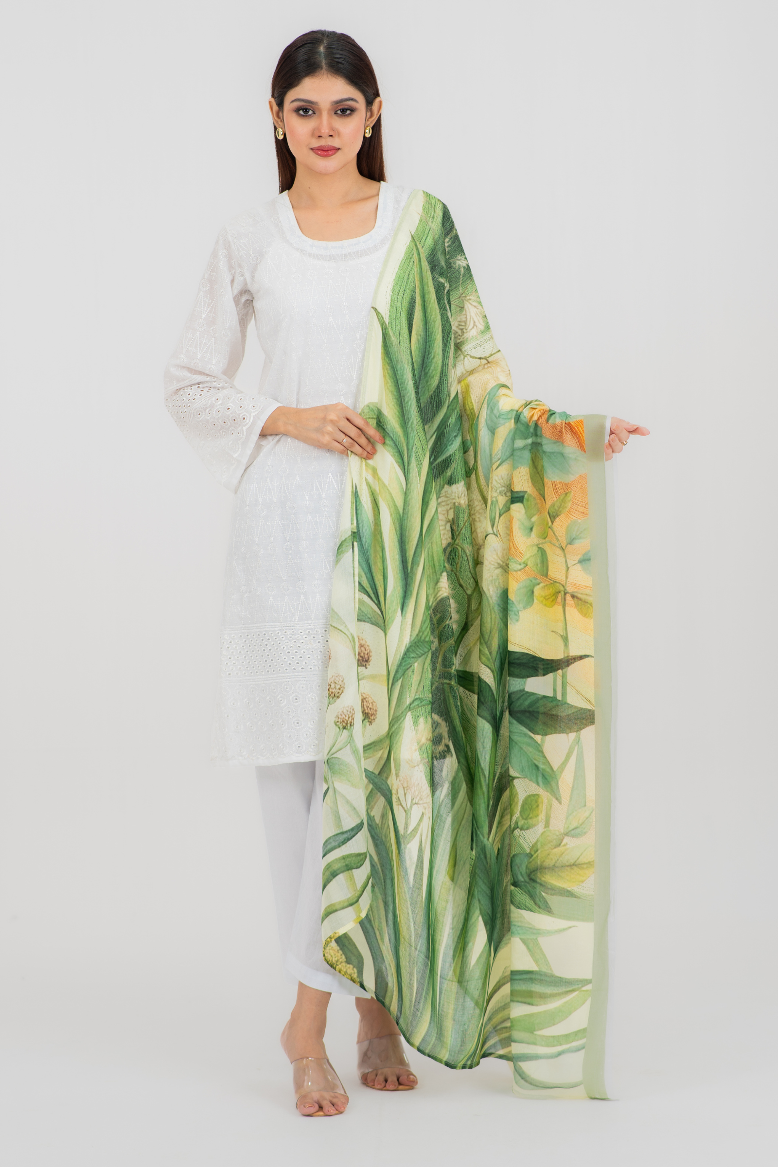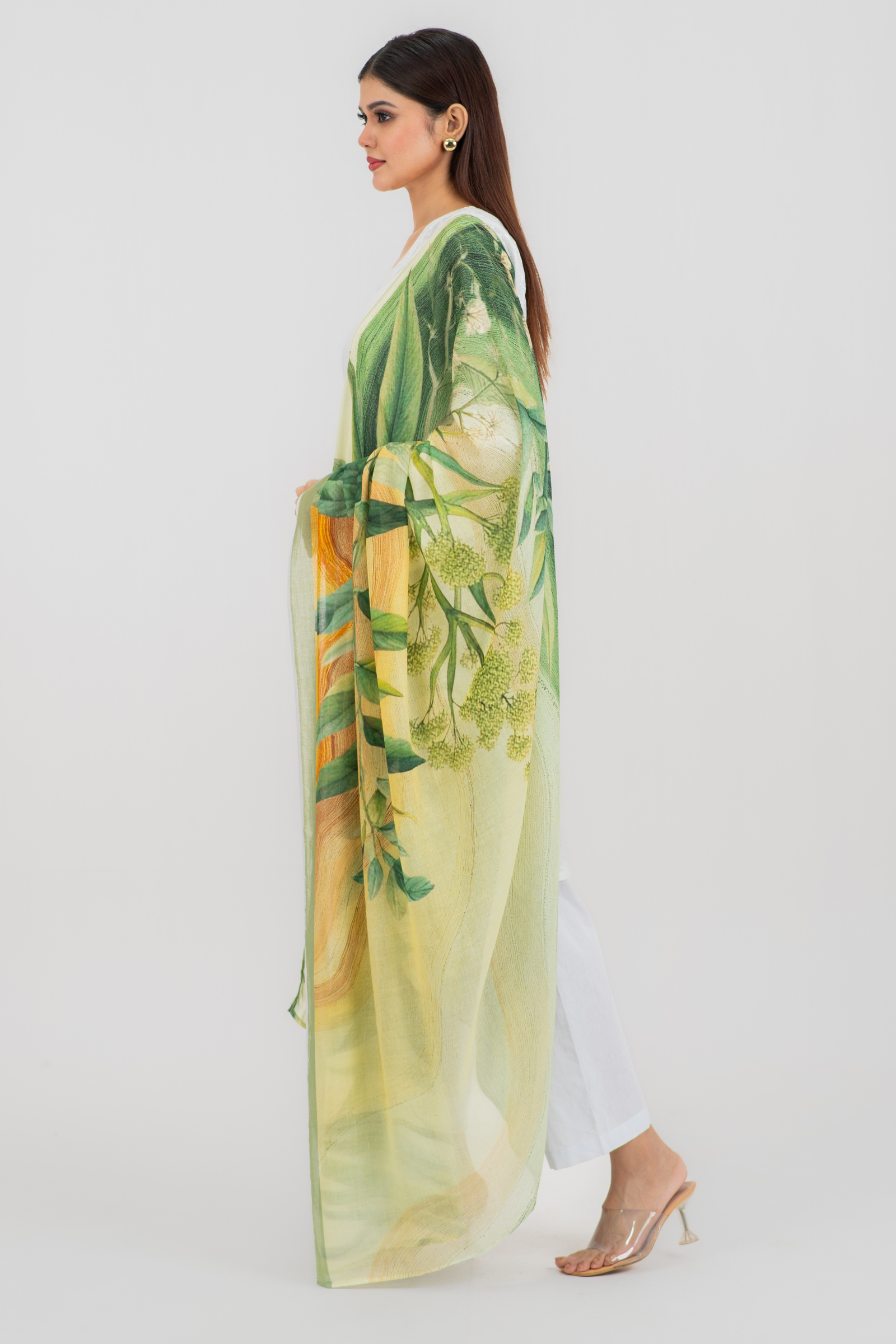 Gorgeous digitally printed orna on superfine tencel fabric with printed solid border.