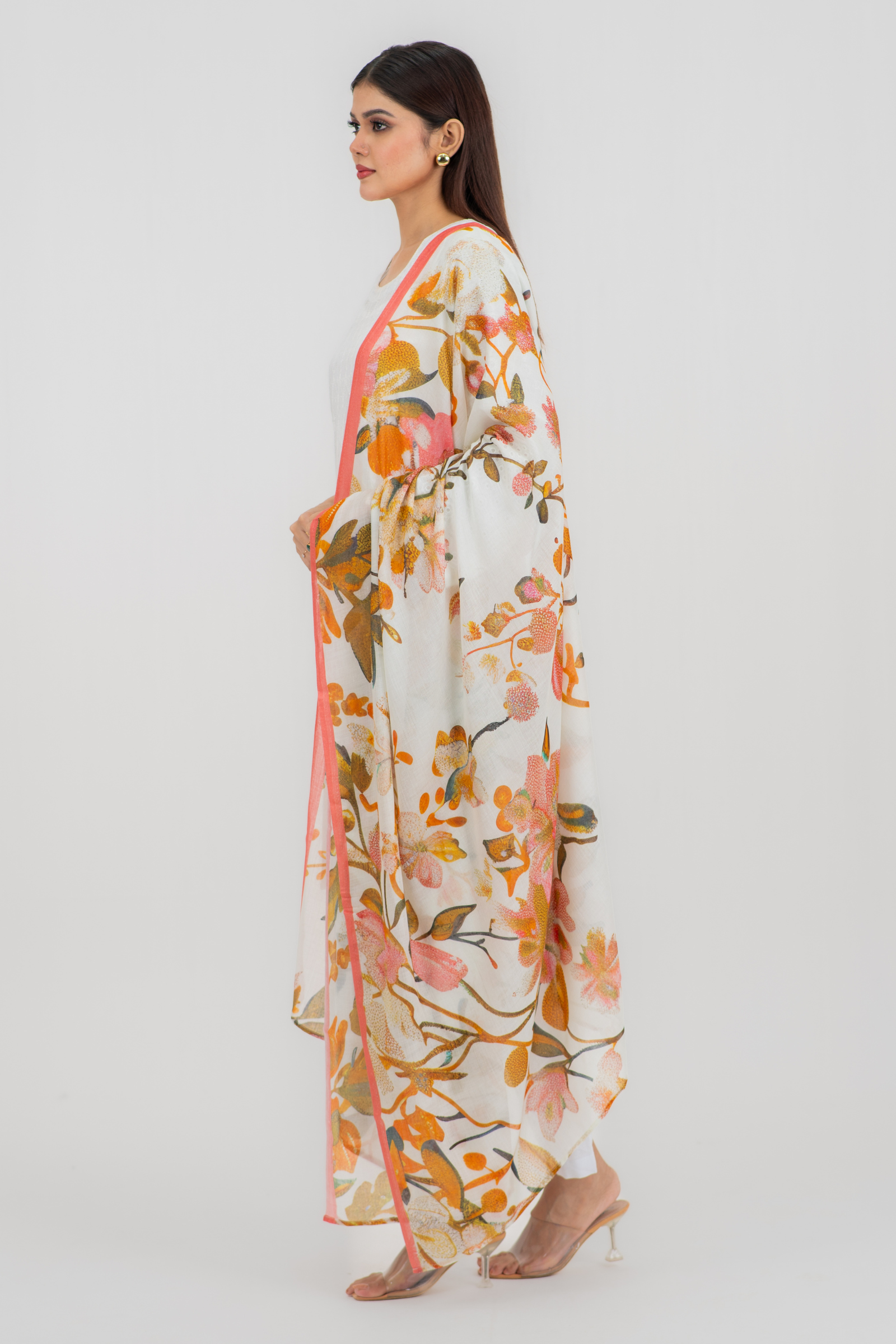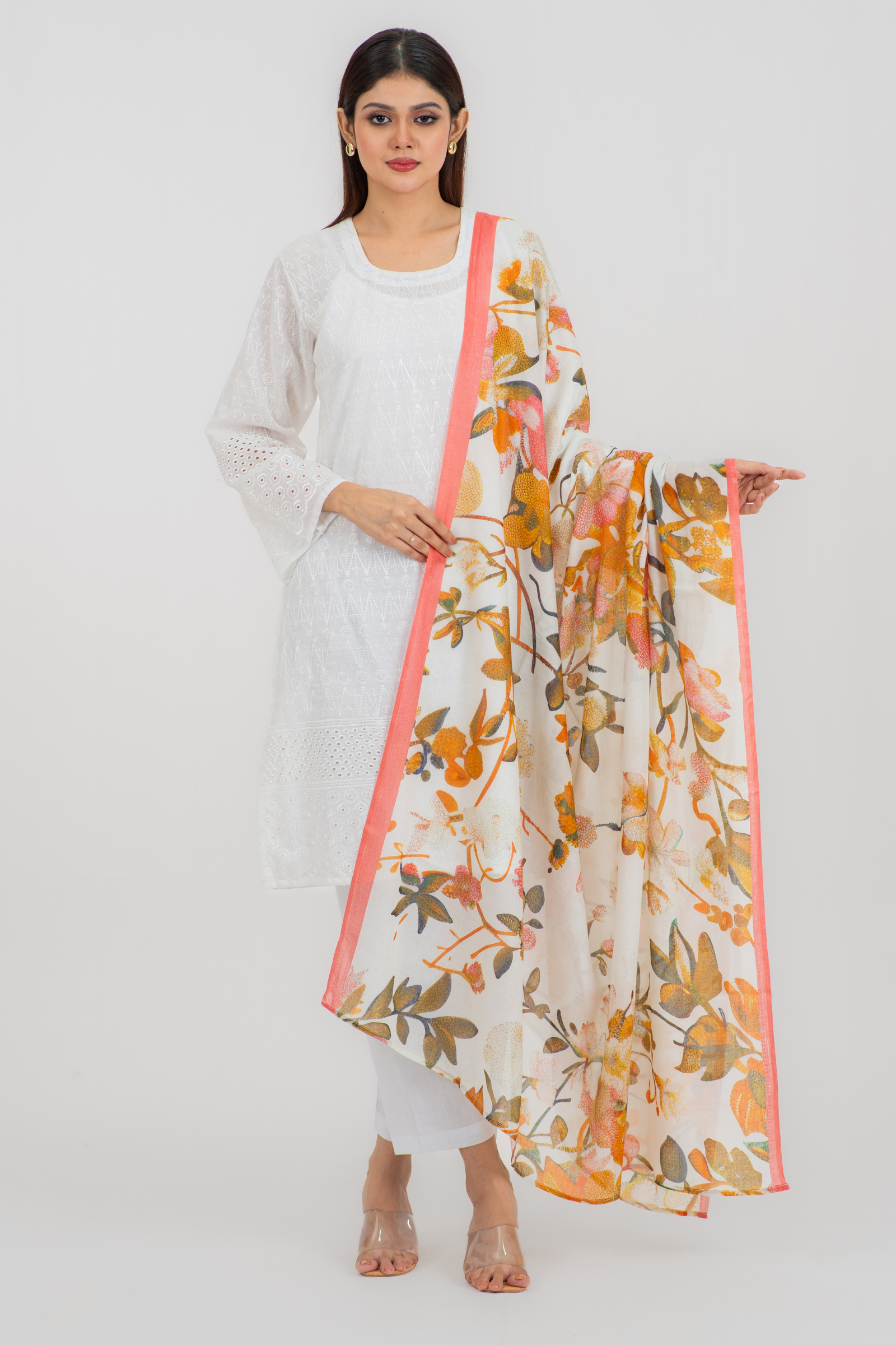 Gorgeous digitally printed orna on superfine tencel fabric with woven jacquard border.