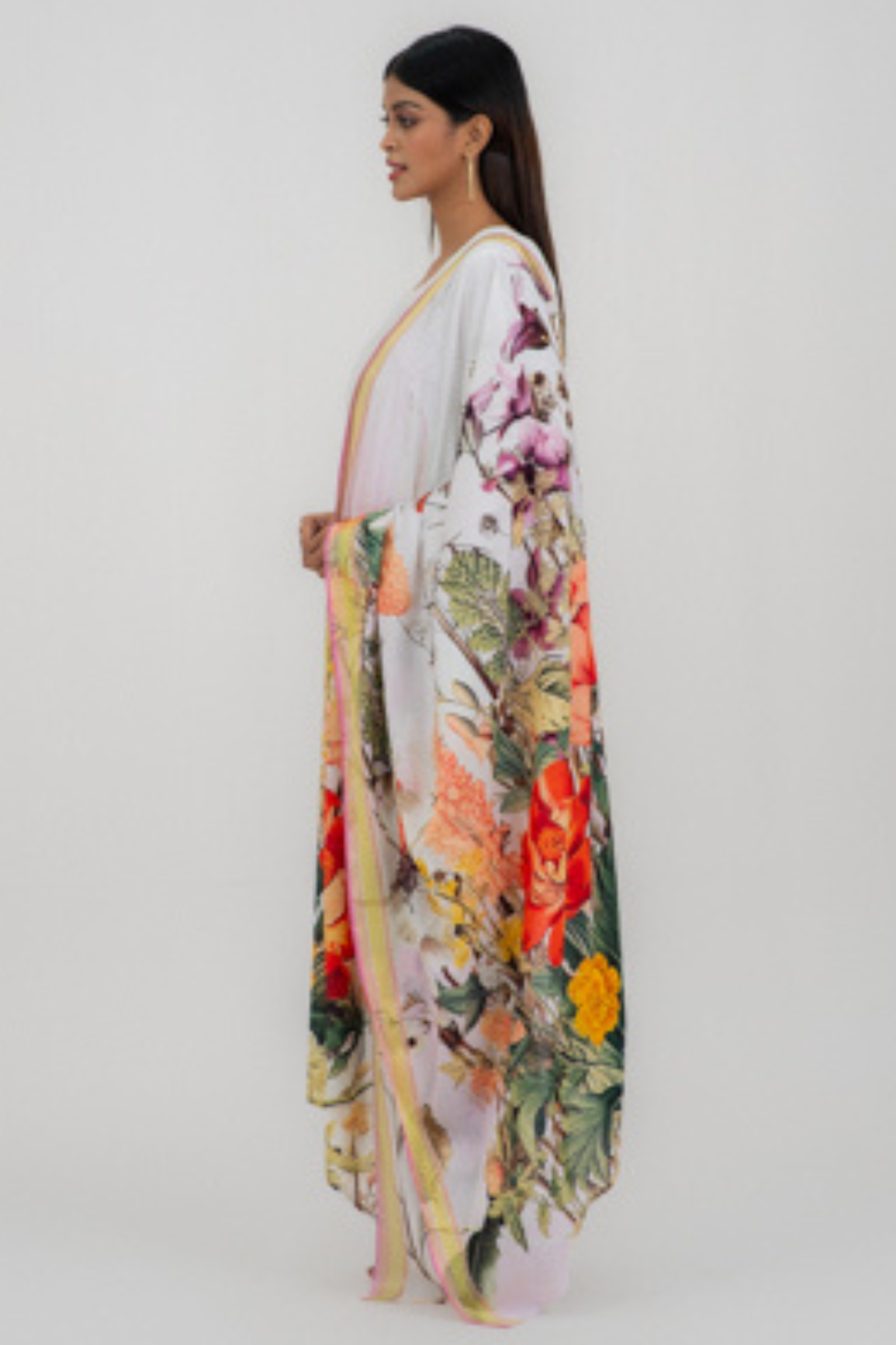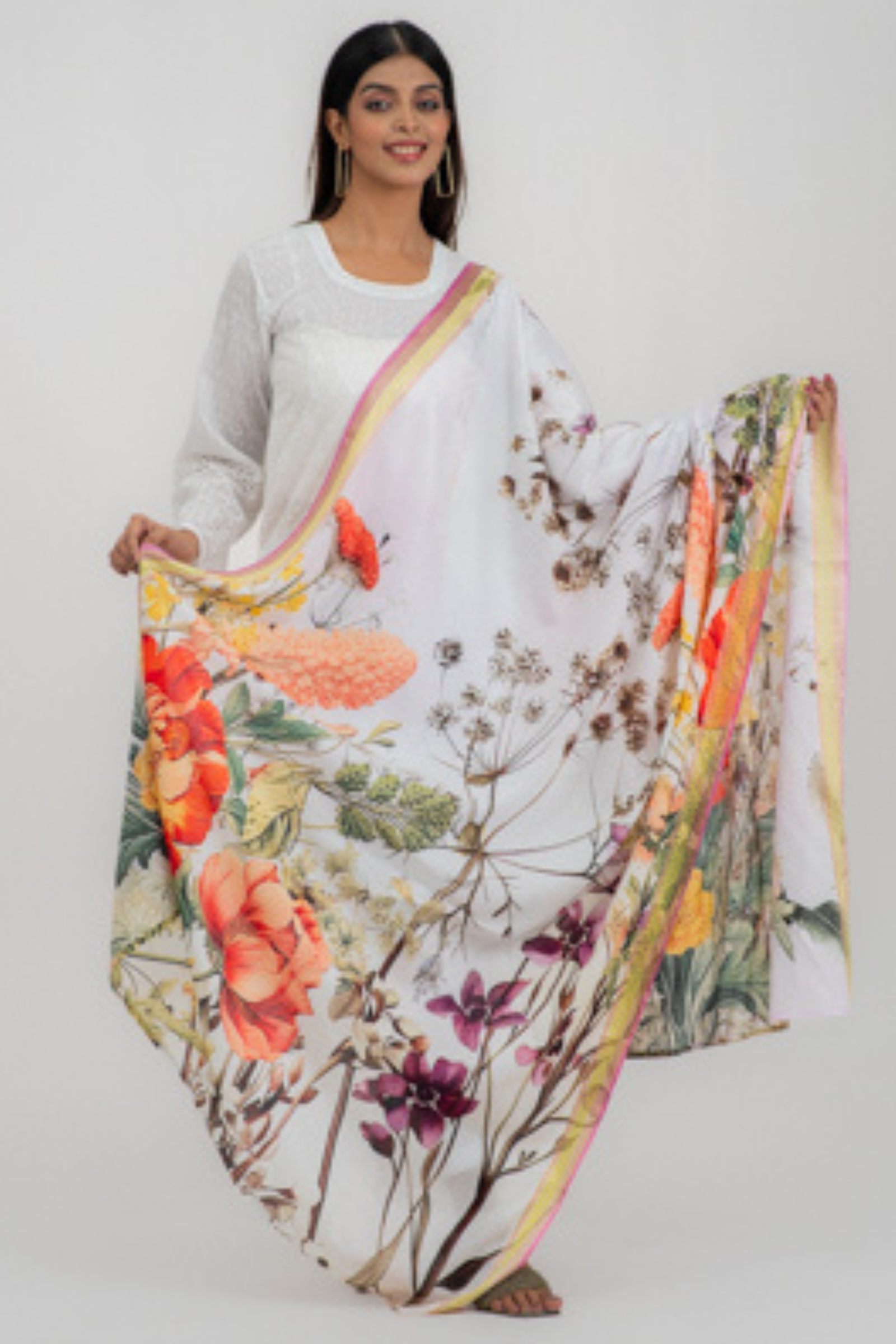 Gorgeous digitally printed orna on superfine tencel fabric with woven jacquard border.