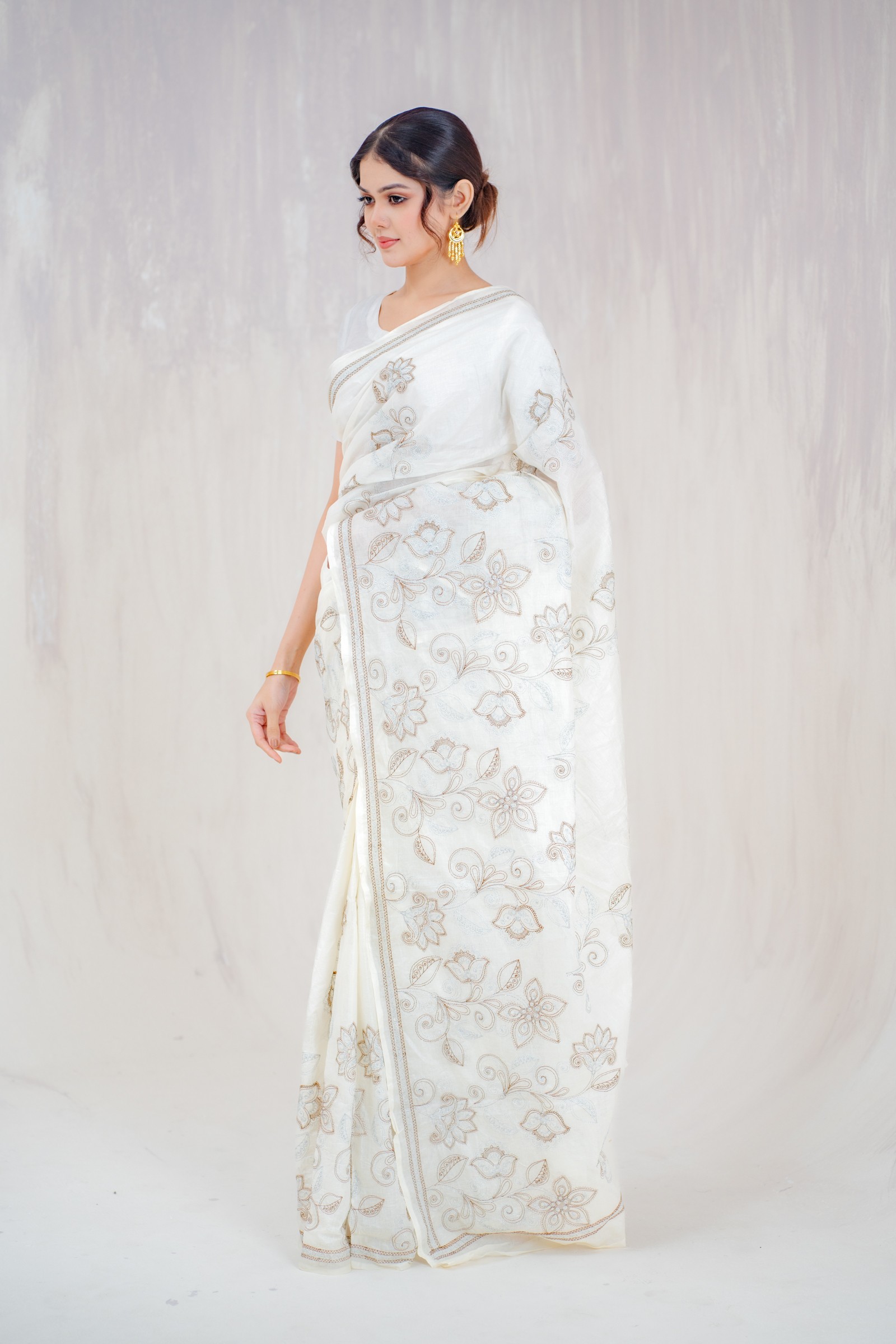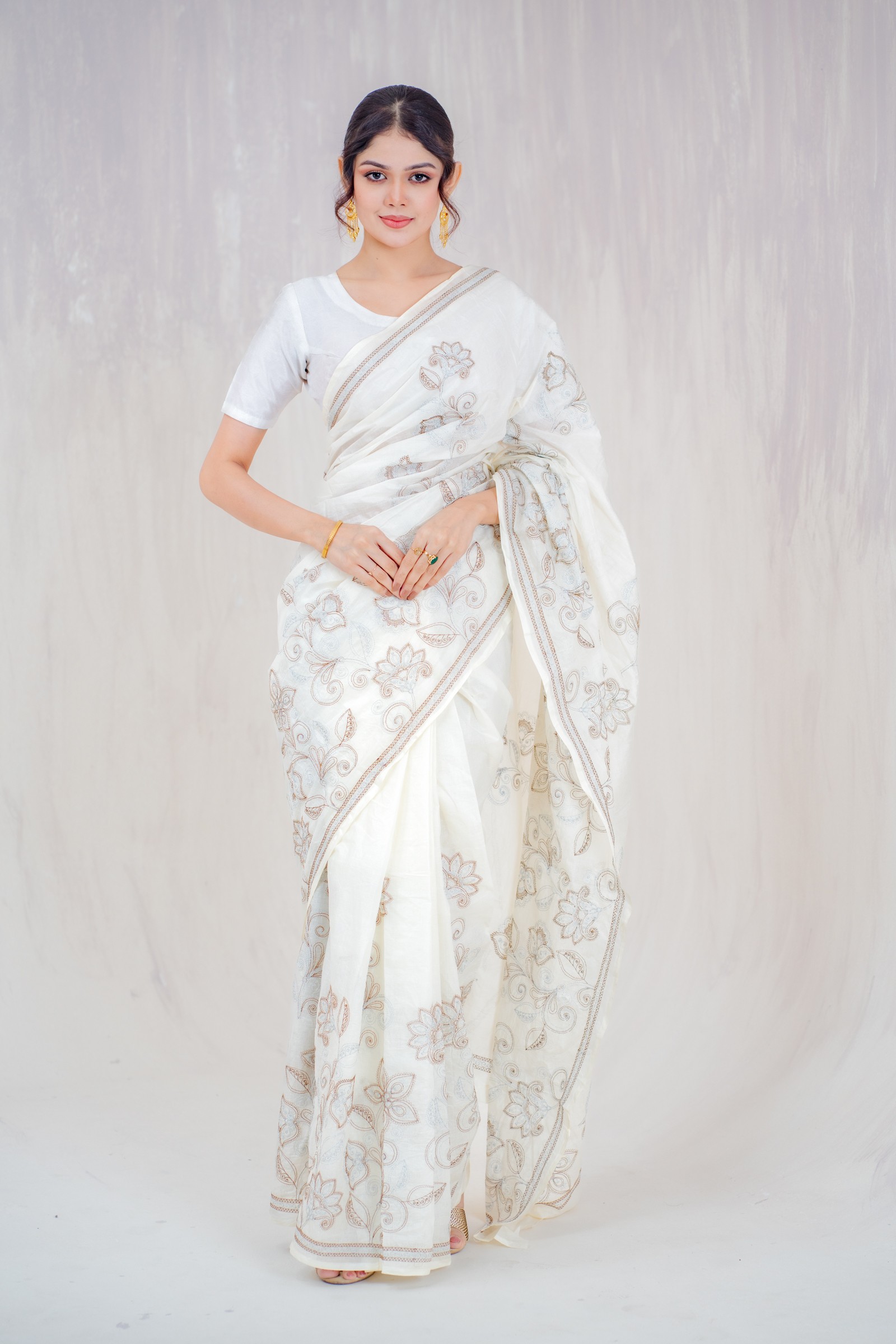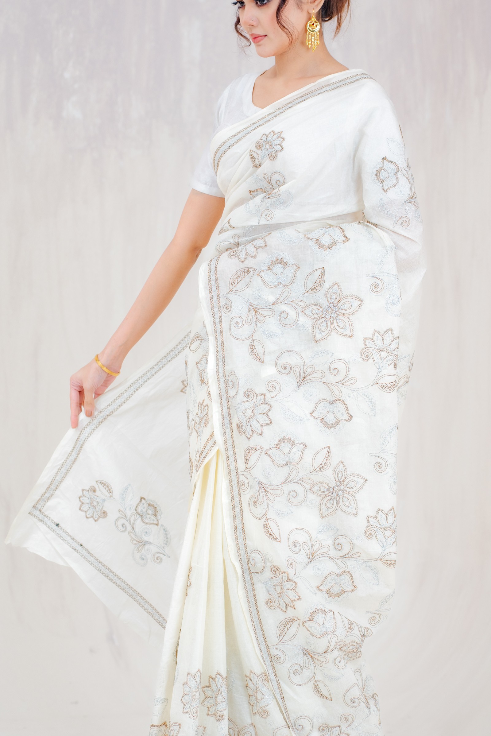 A soft cotton sari with computerized embroidery.