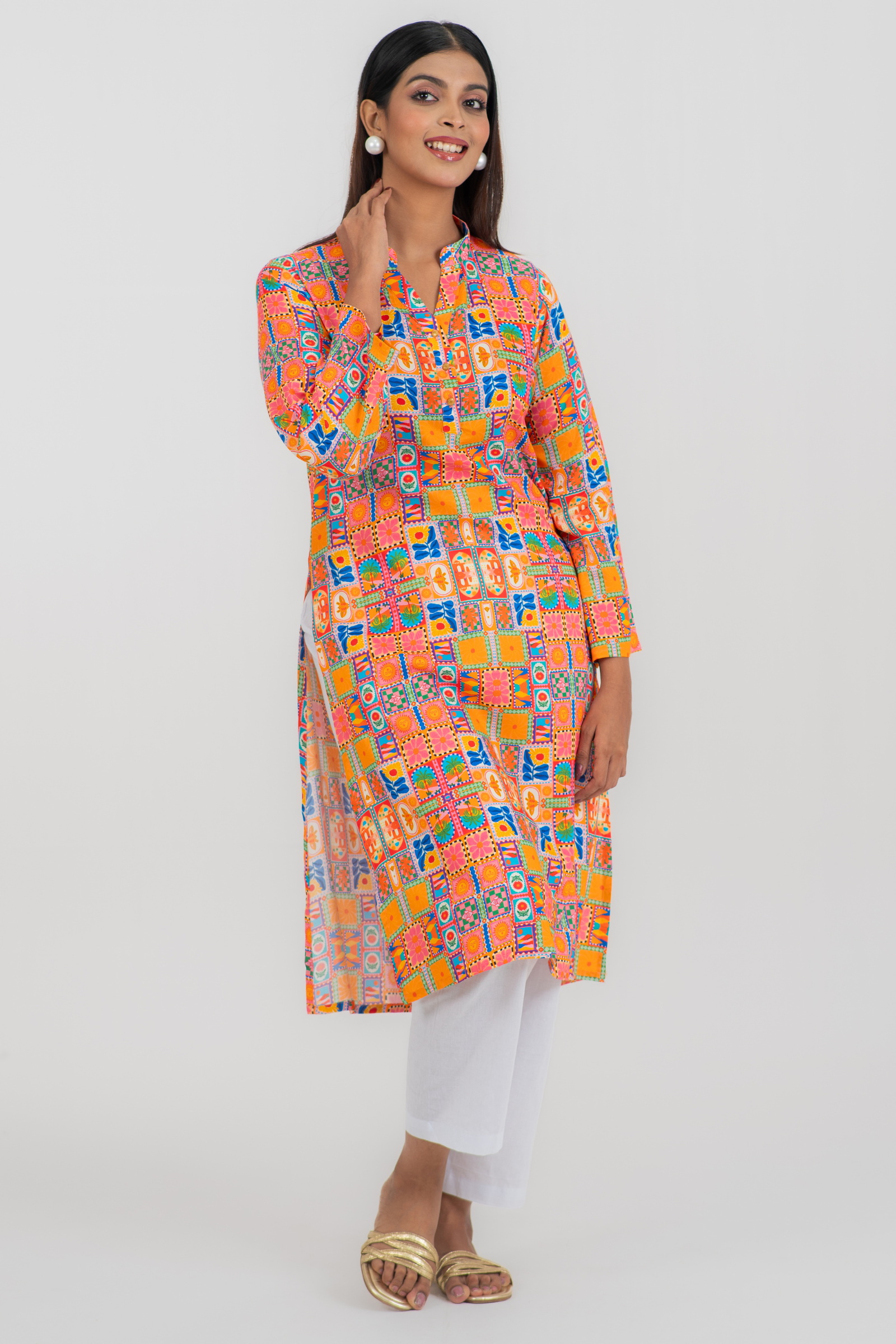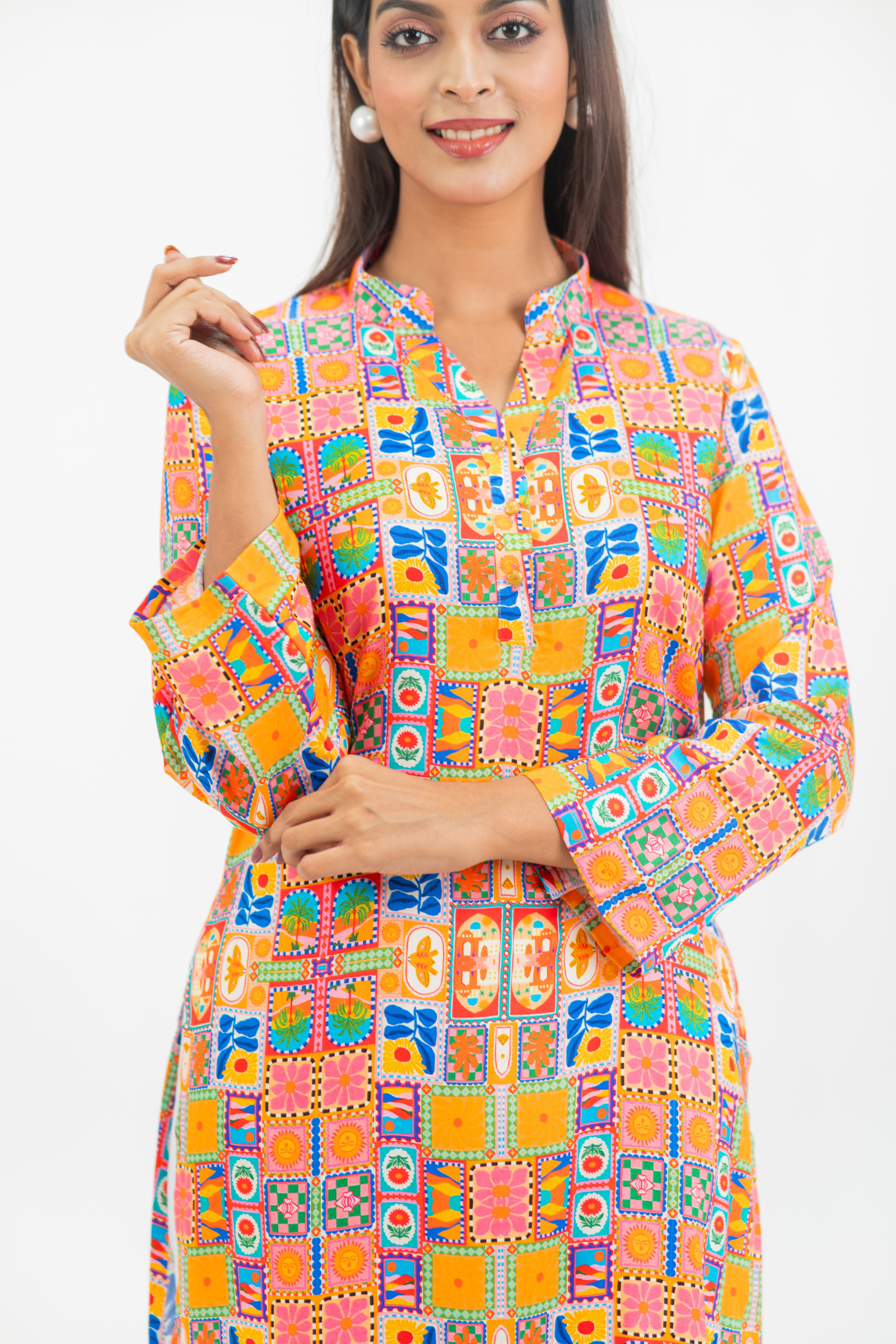 Fit: Regular Fit | Neat, Easy fit Technique: Digital Printed | Mid-length hem Description: Long tunic with the perfect mix of relaxed and modern. Model is wearing size S.