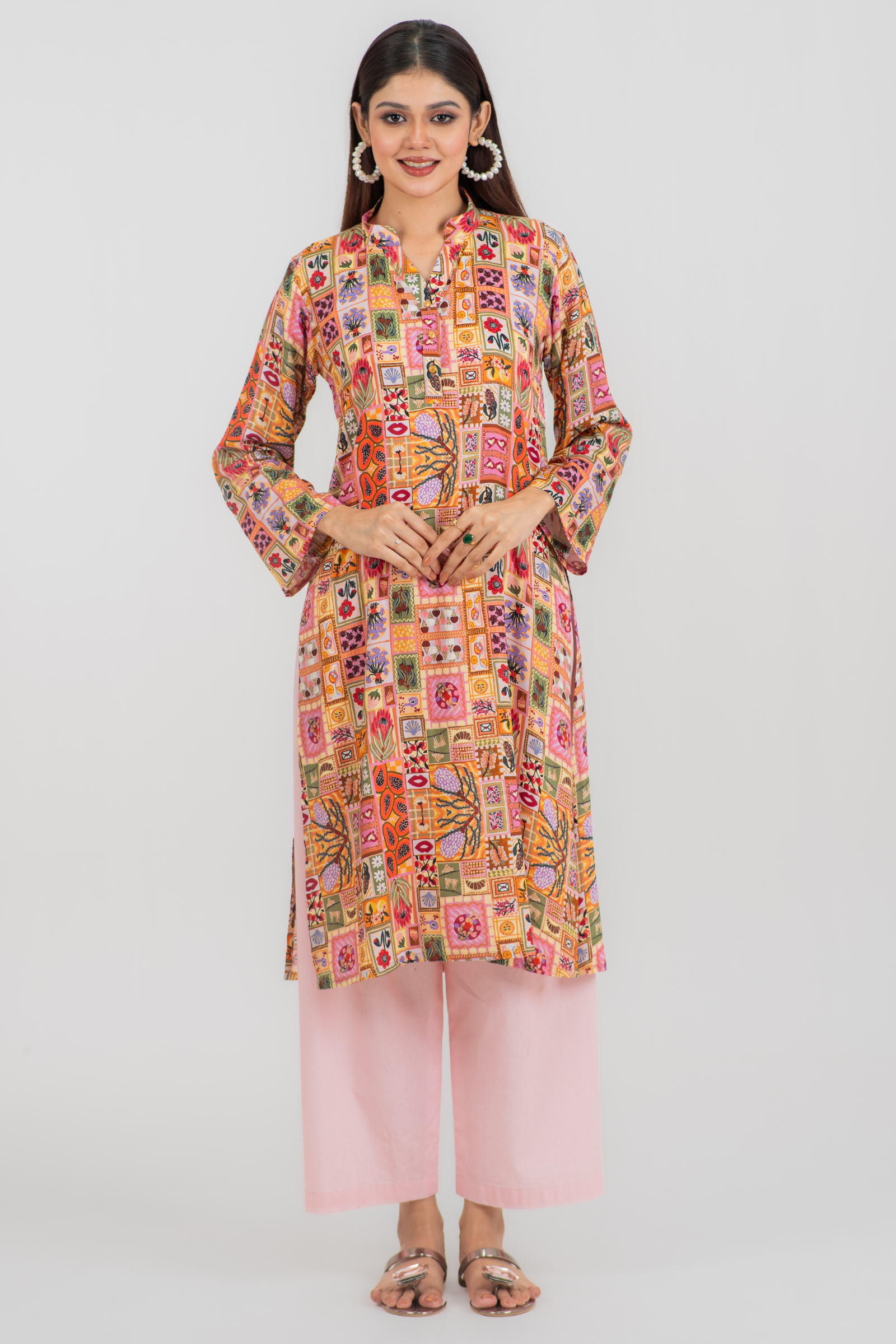 Fit: Regular Fit | Neat, Easy fit Technique: Digital Printed | Mid-length hem Description: Long tunic with the perfect mix of relaxed and modern, with gold metal buttons on placket. Model is wearing size S.