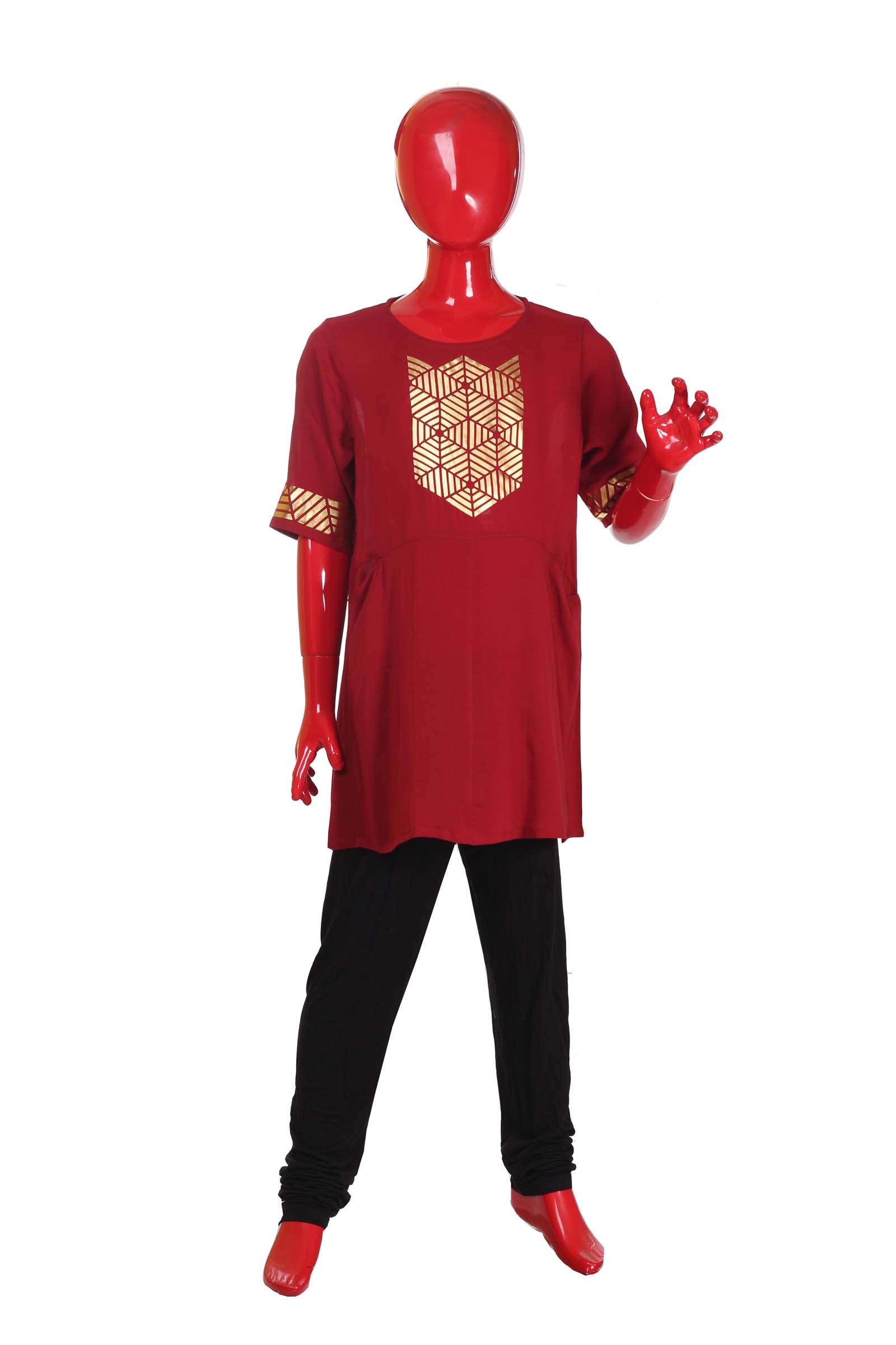 Featuring a foil printed viscose tunic with aztec motifs on chest and sleeve.