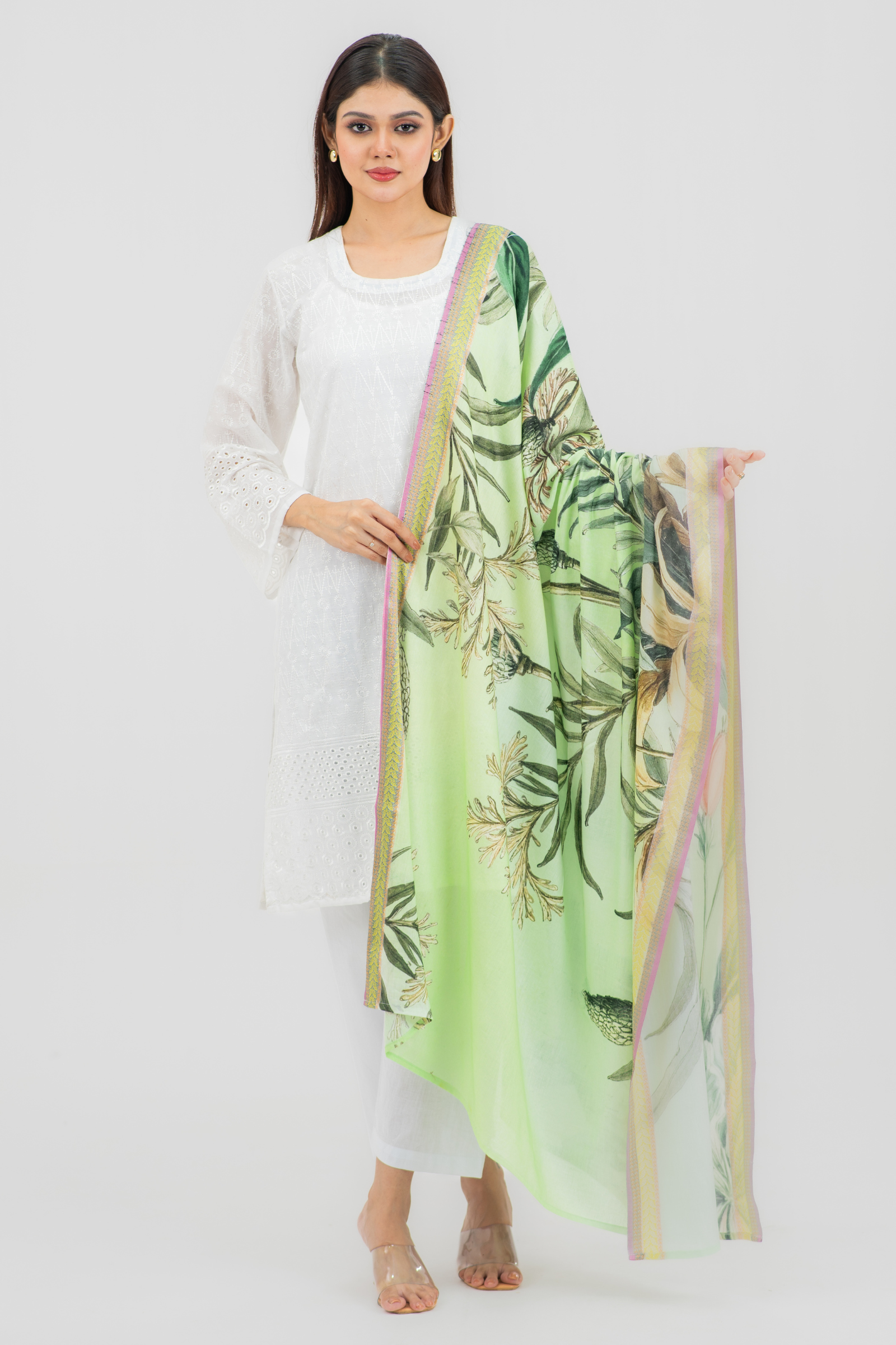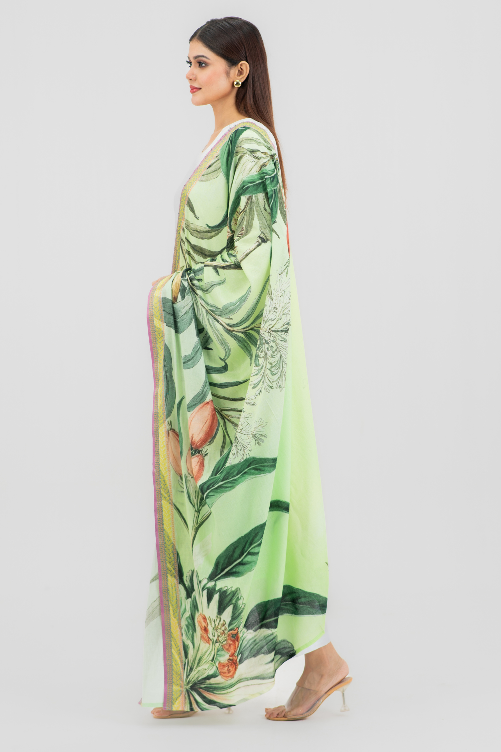 Gorgeous digitally printed orna on superfine tencel fabric with woven jacquard border.
