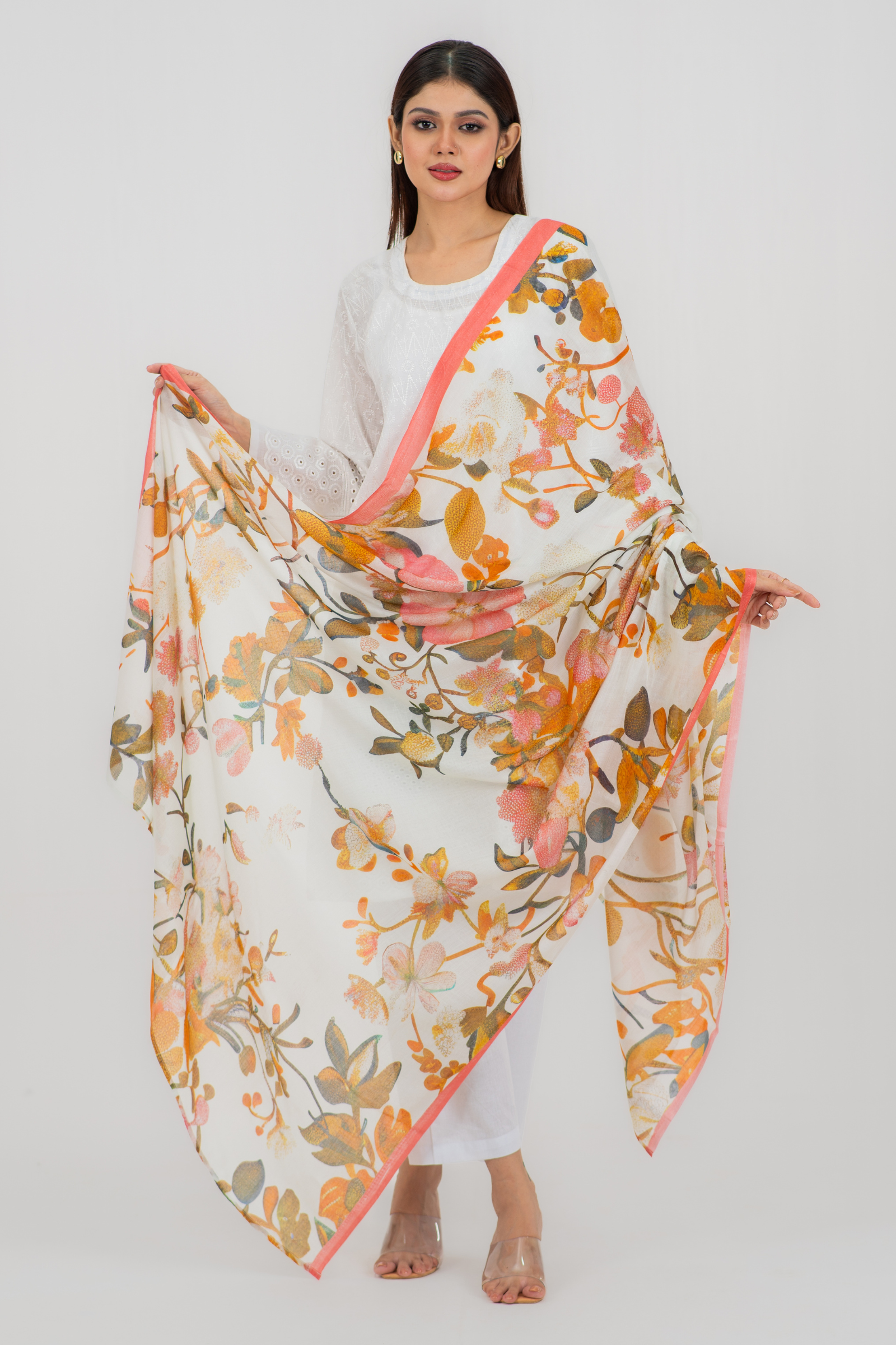 Gorgeous digitally printed orna on superfine tencel fabric with printed solid border.