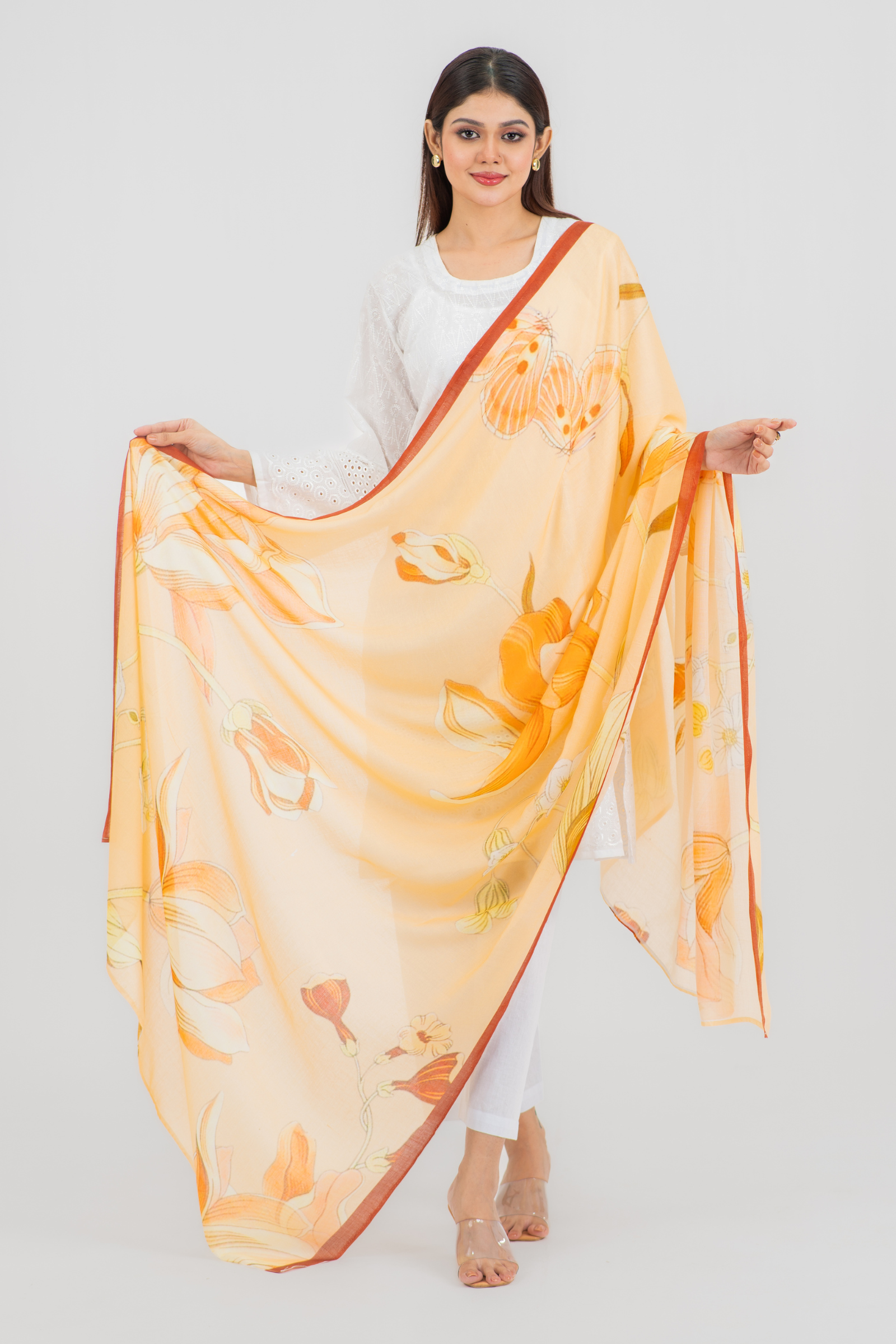 Gorgeous digitally printed orna on superfine tencel fabric with printed solid border.