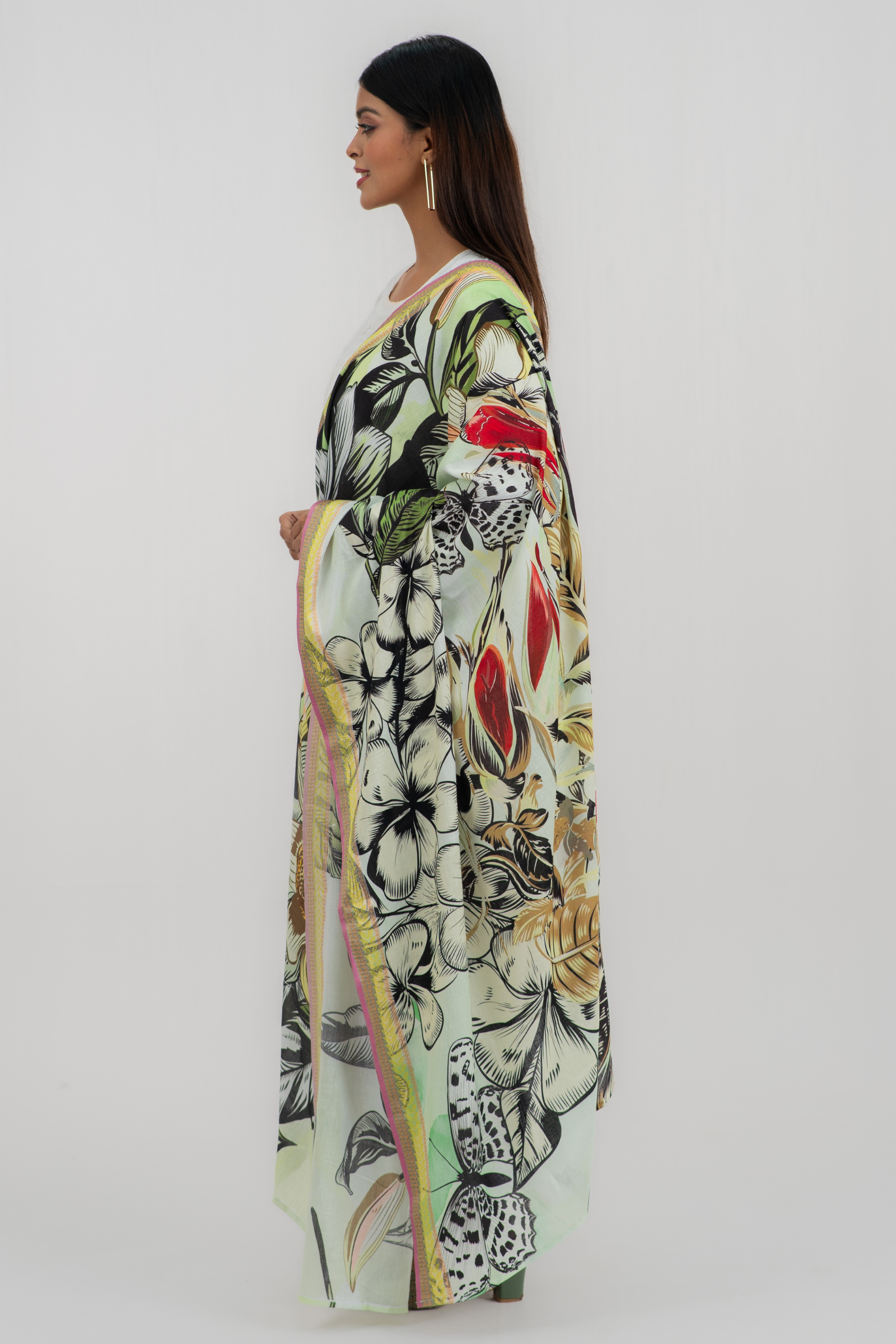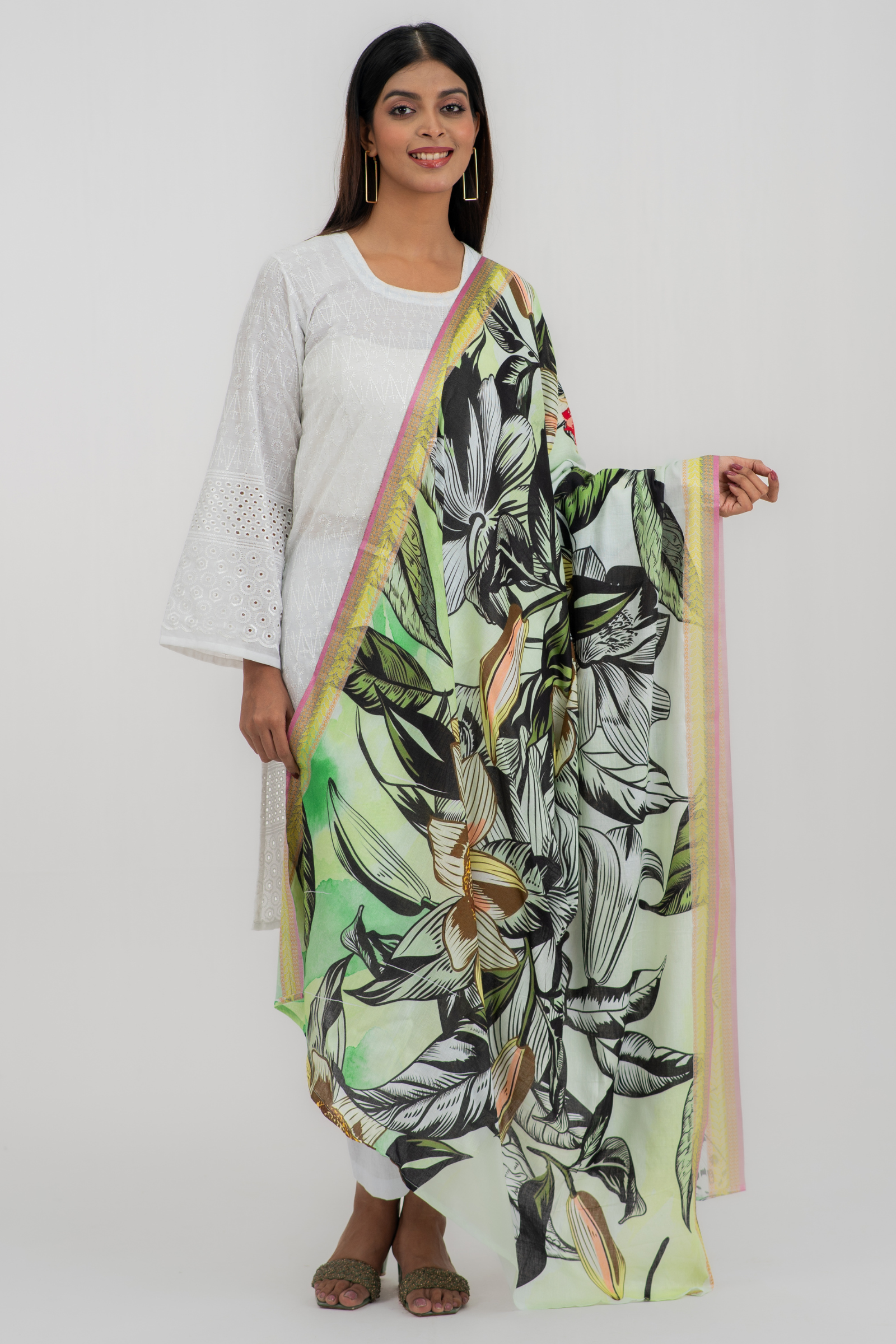 Gorgeous digitally printed orna on superfine tencel fabric with woven jacquard border.