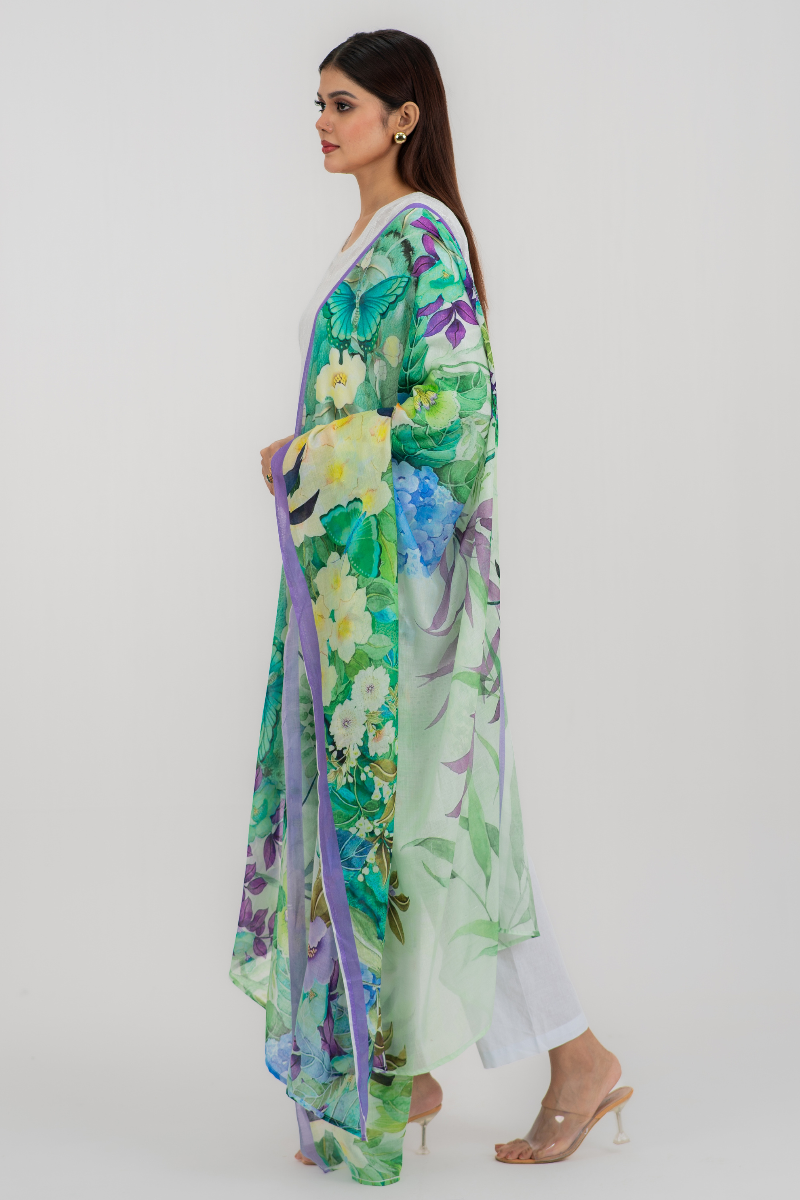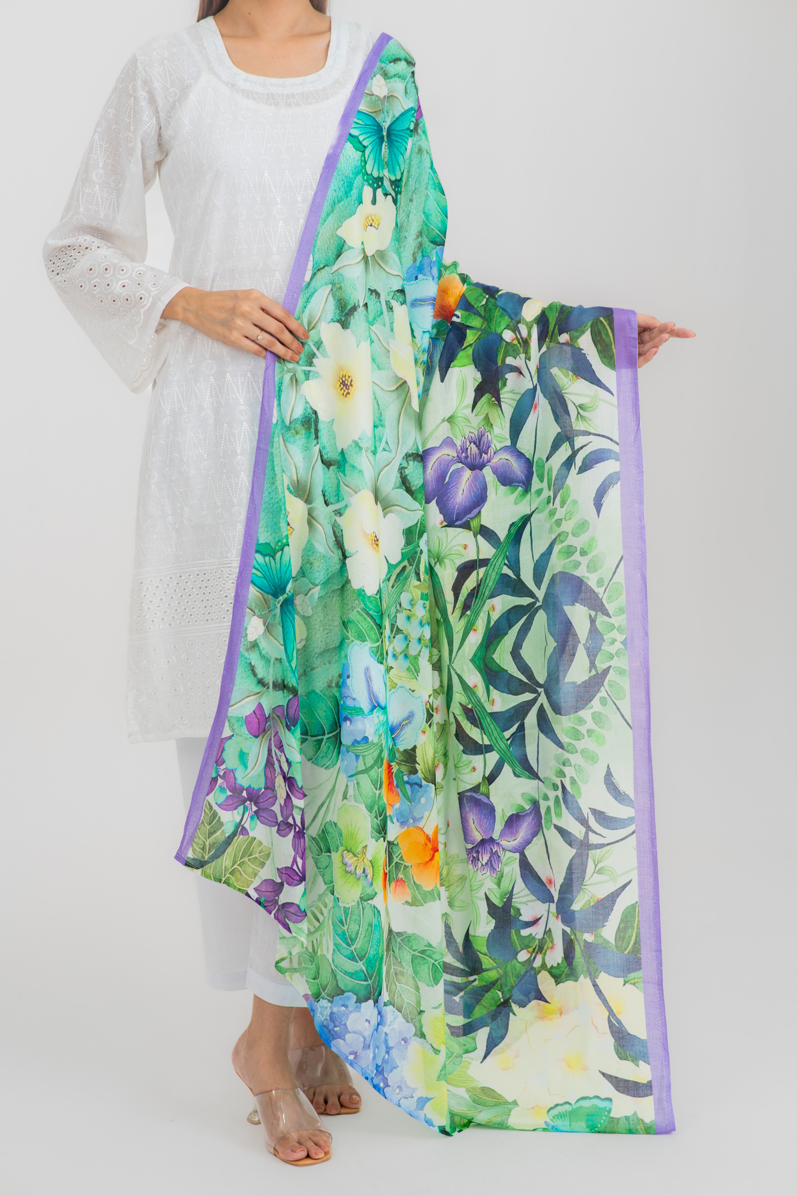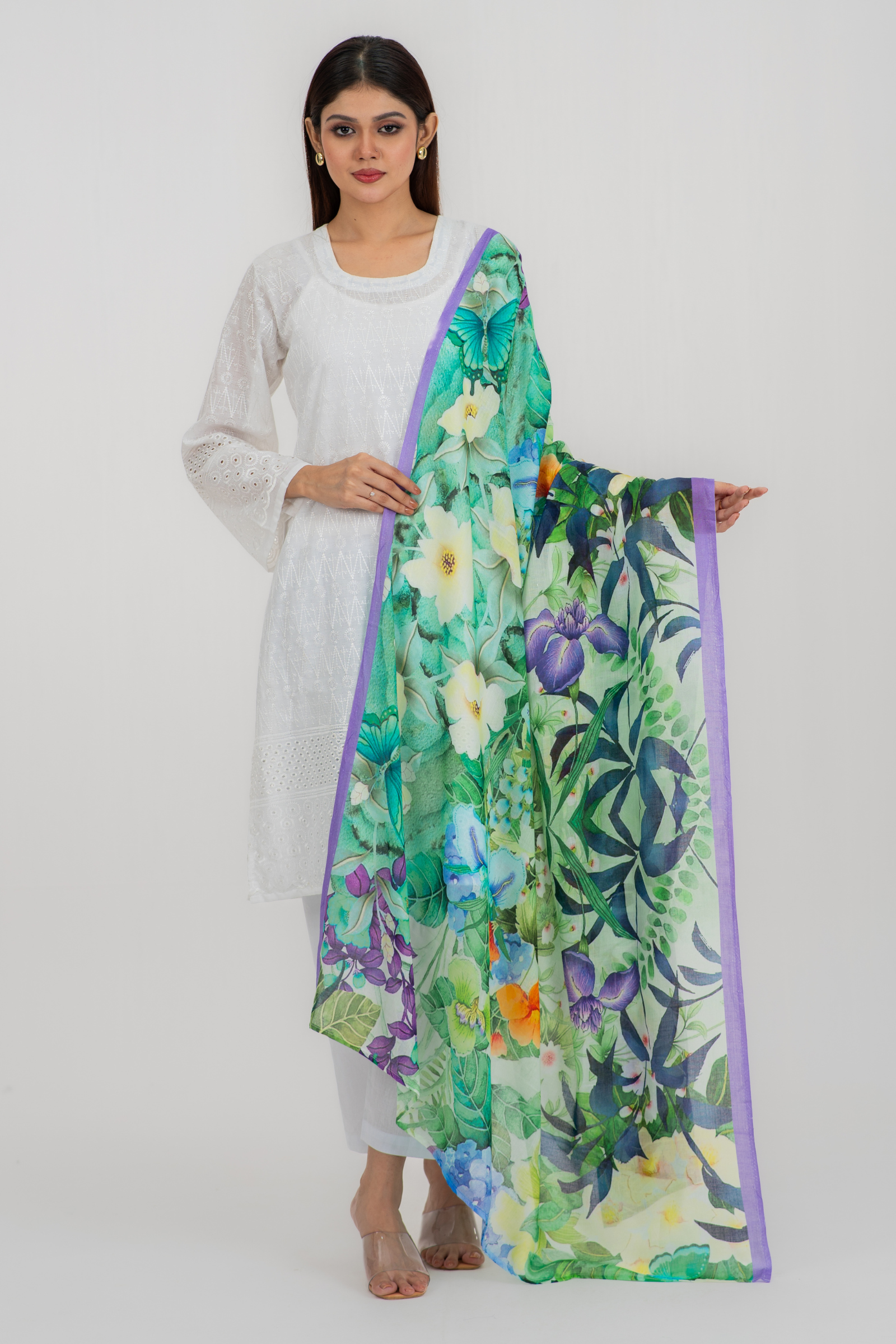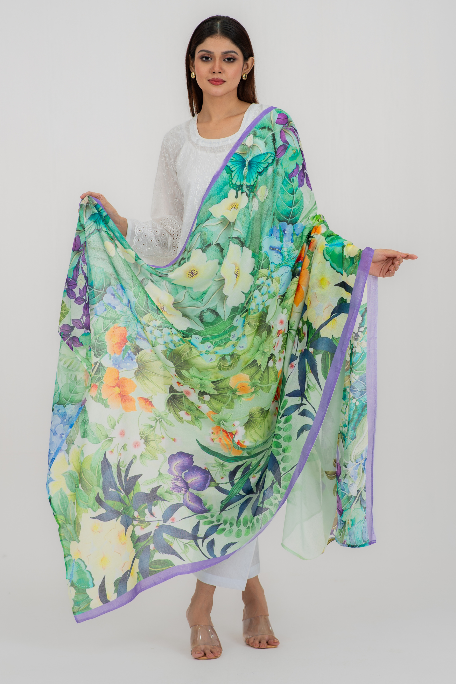 Gorgeous digitally printed orna on superfine tencel fabric with printed solid border.