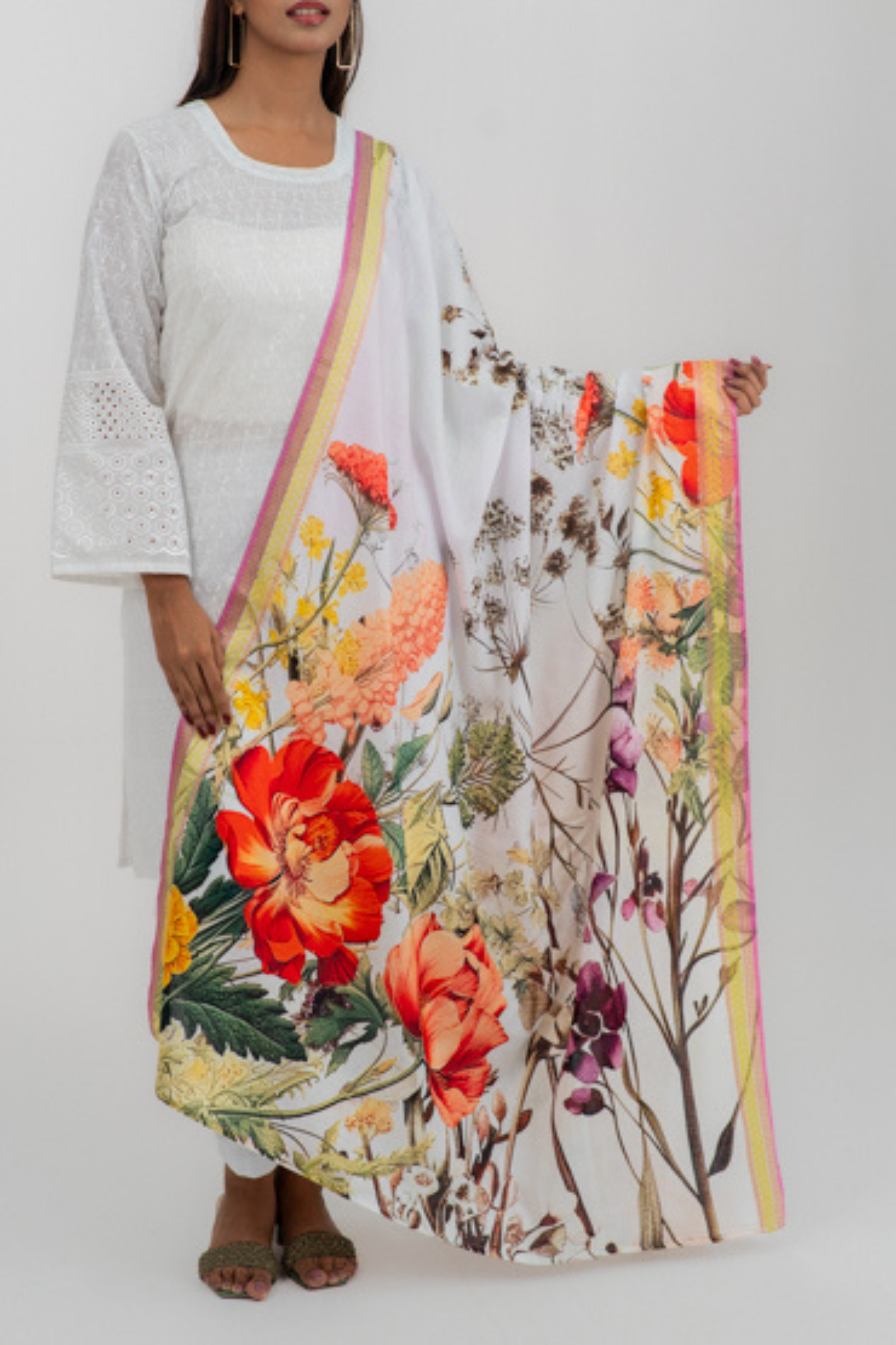 Gorgeous digitally printed orna on superfine tencel fabric with woven jacquard border.