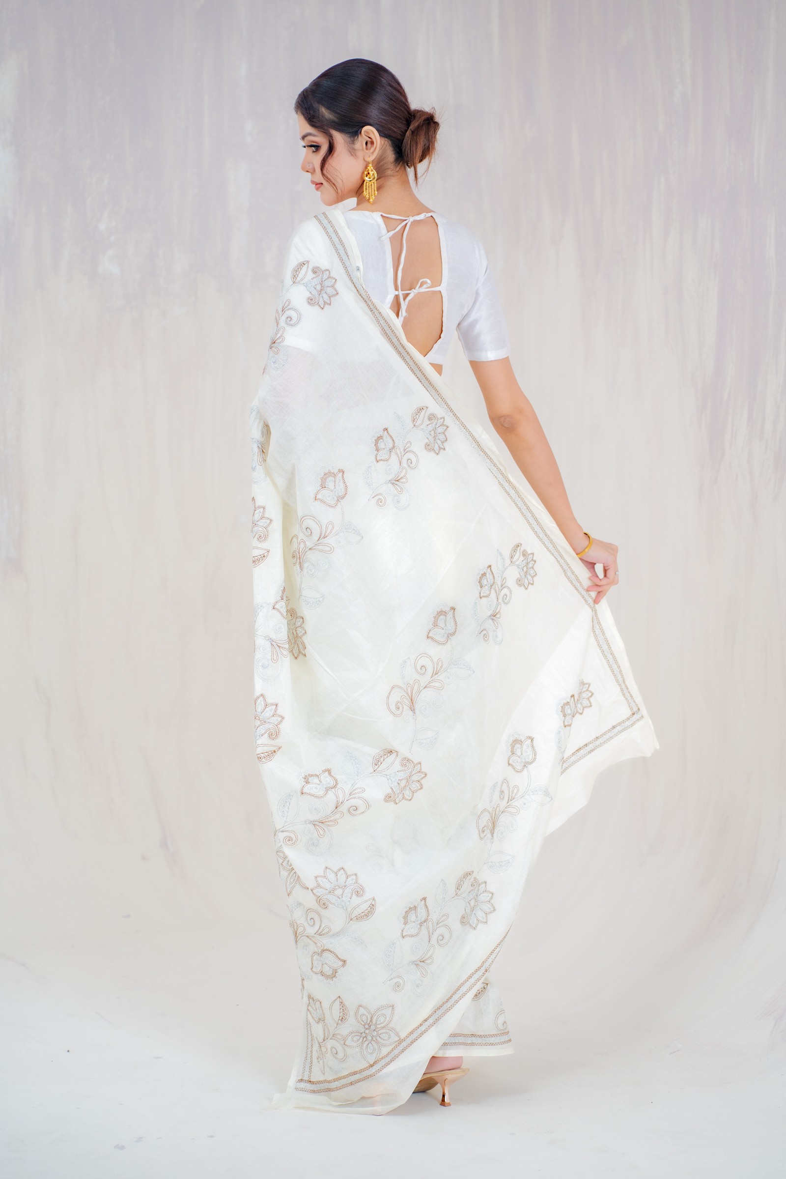 A soft cotton sari with computerized embroidery.